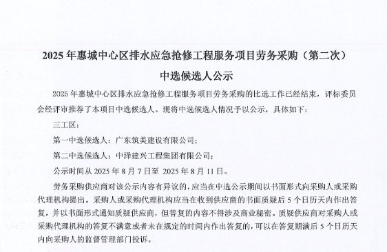 惠州市水電建筑工程有限公司成立于一九六四年四月,隸屬惠州市水務(wù)集團(tuán)有限公司,是一家國(guó)有綜合性施工企業(yè),主營(yíng)水利水電工程、房屋建筑、市政工程等施工業(yè)務(wù)。公司擁有水利水電工程施工總承包一級(jí)、建筑工程施工總承包一級(jí)、市政公用工程施工總承包一級(jí)、公路工程施工總承包三級(jí),公路路基、路面及建筑裝修裝飾專業(yè)承包二級(jí),環(huán)保工程、機(jī)電安裝、河湖整治、輸變電工程專業(yè)承包三級(jí)等經(jīng)營(yíng)資質(zhì)……